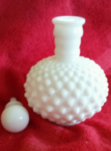Title (ebay affiliate link): Vintage Fenton White Milk Glass Hobnail Perfume Bottle & Stopper