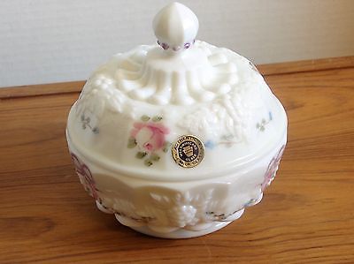 Westmoreland Hand Painted Roses White Milk Glass grape patt Covered Candy Dish