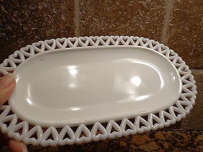 Vintage MILK GLASS Sweden LINDSHAMMER Gunnar Ander HEART Lace Edge Plate TRAY