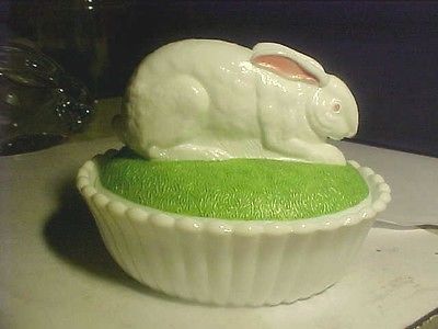 Title (ebay affiliate link): Vintage Westmoreland Milk Glass Easter Bunny Rabbit On Nest Covered Animal Dish