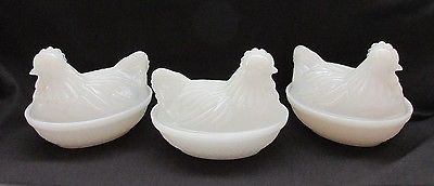 HAZEL ATLAS MILK GLASS COVERED CHICKEN HEN LOT OF 3