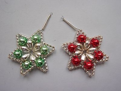 Lot of 2 VINTAGE Czechoslovakia GLASS BEADED STARS Christmas Ornaments