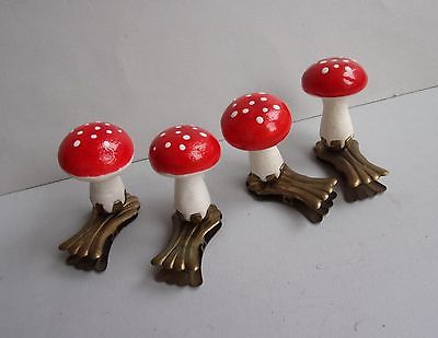 4 VINTAGE CLIP ON SPUN COTTON MUSHROOMS CHRISTMAS ORNAMENTS