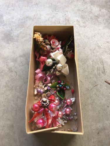 Title (ebay affiliate link): VTG Lot ANTIQUE XMAS CORSAGE CRAFT DECORATIONS ORNAMENTS & MERCURY GLASS