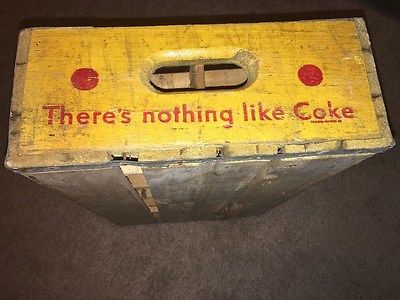 Title (ebay affiliate link): Coca Cola Yellow Vintage Wooden Bottle Soda Advertising Crate 1955 era 24 slot