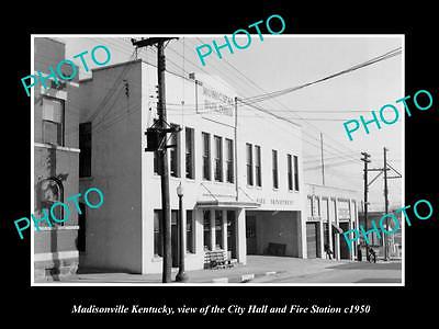 OLD LARGE HISTORIC PHOTO OF MADISONVILLE KENTUCKY, CITY HALL & FIRE STATION 1950