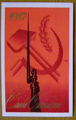 1973 SOVIET POSTCARD hammer sickle rifle with bayonet INFREQUENT Isaeva com763a