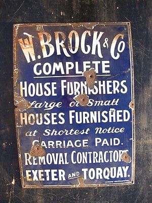 Old Enamel Sign - Vintage House Furnishing Advert Brock Torquay Devon Furniture