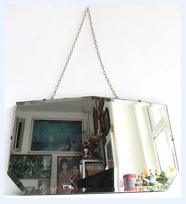 Title (ebay affiliate link): 30s VINTAGE RETRO ART DECO FRAMELESS BEVELLED RECTANGLE WALL MIRROR WITH CHAIN