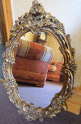 VINTAGE FRENCH STYLE ROCOCO FLORAL ORNATE OVAL GILT WALL MIRROR SHABBY CHIC 23"