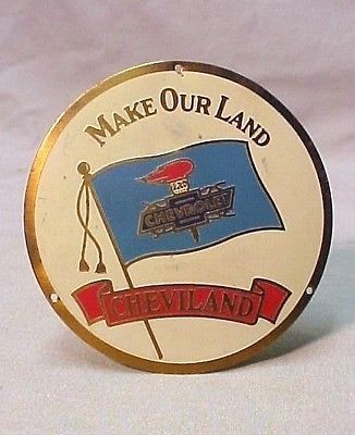 Title (ebay affiliate link): VINTAGE CHEVROLET MAKE OUR LAND CHEVILAND BRASS SIGN PLAQUE 1930s-40s