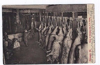 Title (ebay affiliate link): Union Stockyards,Chicago, Ill-view of sticking pen-US Yards-b/w rppc 1906