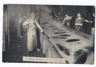 Title (ebay affiliate link): Union Stockyards-Chicago, Ill--Scalding Hogs-b/w rppc unposted