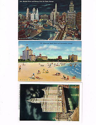 Title (ebay affiliate link): 2 Card Lot, Chicago, Illinois, Night Views Plus Hotel and Beach!