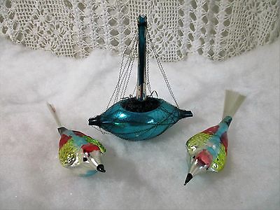3- VINTAGE OLD CHRISTMAS TREE GLASS ORNAMENTS MERCURY -BIRDS-BLUE W/ WIRE