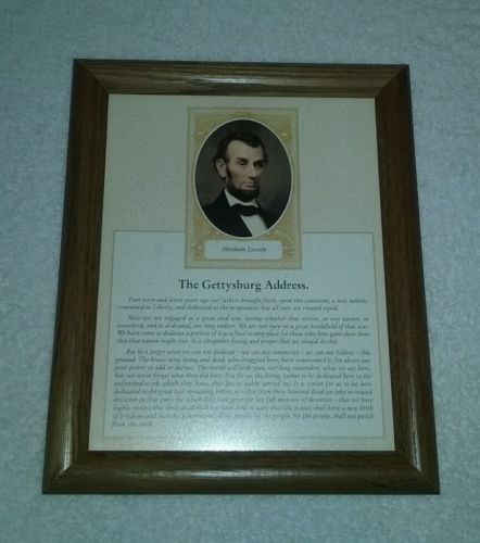 Title (ebay affiliate link): Wood Framed Copy of "The Gettysburg Address" w/ Photo of Abraham Lincoln