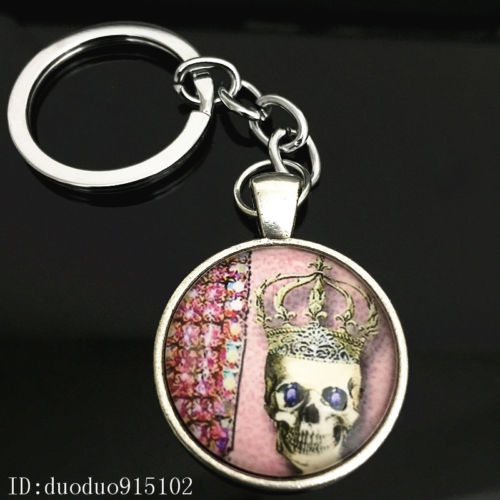 Title (ebay affiliate link): Vintage skull Keychain Cabochon Tibetan silver Glass Metal Key Ring Y30