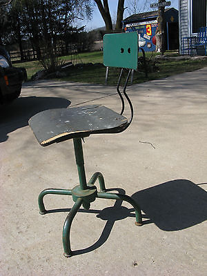 Title (ebay affiliate link): Vtg Industrial Swivel Factory Stool Chair Steampunk Machine Age Springy Backrest