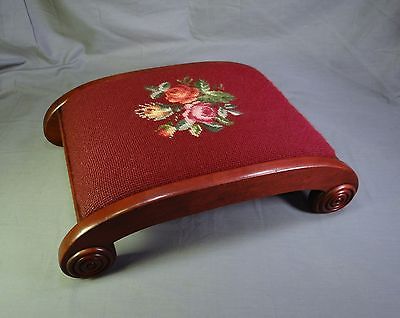 Antique Vintage Old Mahogany Needlepoint Foot Stool Footstool
