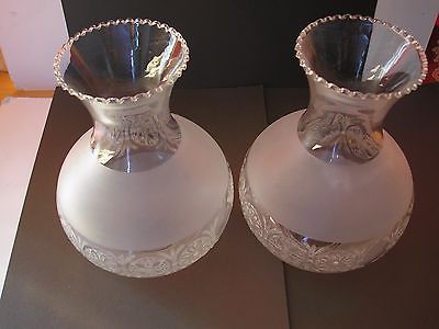 A PAIR OF VINTAGE 1950s ETCHED GLASS GLASS SHADES FOR OIL LAMP SH/3 /A
