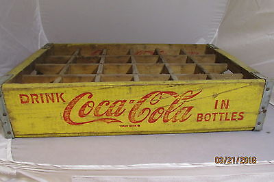 VINTAGE YELLOW DRINK COCA COLA WOOD SODA BOTTLE CRATE