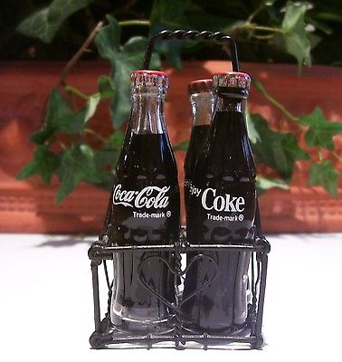Title (ebay affiliate link): Four (4) Pack Coca Cola Miniature Glass Bottles in Wire Basket Mini Coke Soda