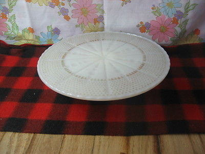 Vintage Pedestal Cake Stand - White Milk Glass with Gold Pattern. Near Mint