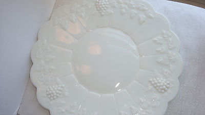 WESTMORELAND PANELED GRAPE VINTAGE HEAVY MILK GLASS HUGE 14.5" CAKE PLATTER
