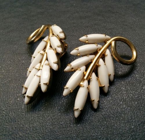 Title (ebay affiliate link): Vintage Signed NAPIER Milk Glass Rhinestone Flower Clip Earrings L87