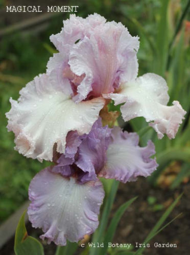Title (ebay affiliate link): Tall Bearded Iris Magical Moment Rhizome Mauve Pink Lilac Milk Glass 2009 Black