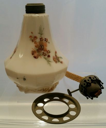 Title (ebay affiliate link): MOUNT WASHINGTON PAIRPOINT OIL MINI LAMP BASE Opal Milk Glass Marked DRESDEN