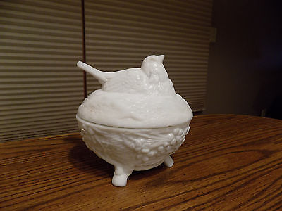 Vintage White Milk Glass Nesting Chicken/Hen Footed