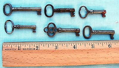 6 Early and diffrent China cabinet lock Keys