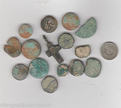 ( Lot Of 14 ) SPANISH AMERICAN COLONIAL, PIRATE TIMES COINS / COBS AND CROSS