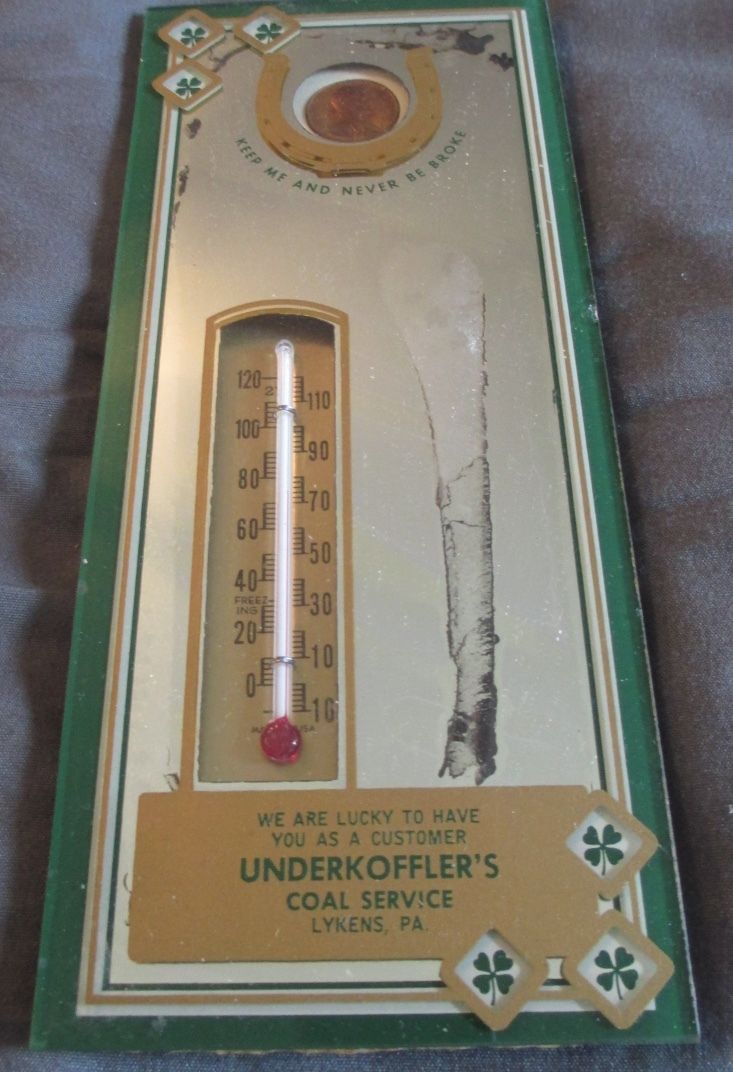 Title (ebay affiliate link): 1950s COAL SERVICE "Lucky" MIRROR THERMOMETER SIGN...Pennsylvania