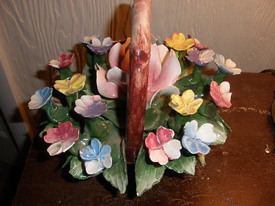 Vintage Capodimonte Multi Color Flower Basket Centerpiece NICE