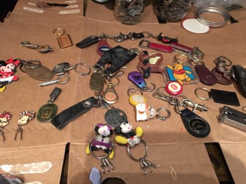 Title (ebay affiliate link): Junk Drawer Lot - Key Chains & Key Fobs Vintage Leather Auto Disney