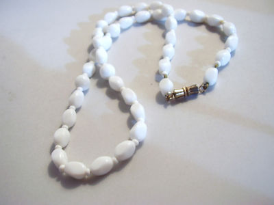 Vintage Oval Milk Glass Bead Necklace
