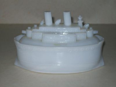 FLACCUS MILK GLASS BATTELESHIP OREGON MUSTARD CONTAINER