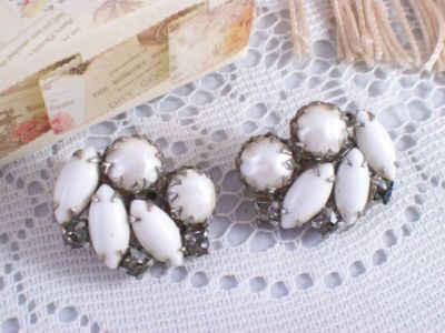 Vintage White Milk Glass Clip On Earrings Nice!!