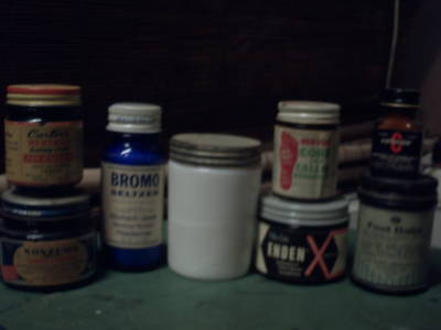 8 Collectible Medicine Bottles Blue Glass Milk Glass