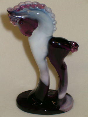 AMETHYST PURPLE AND MILK SLAG ART GLASS PONY HORSE DECO
