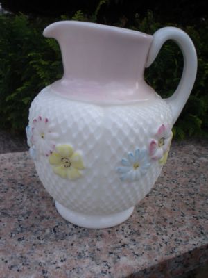 ANTIQUE LARGE MILKGLASS PITCHER FLOWERS MULTICOLORED