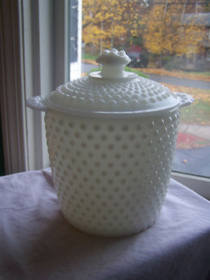 Lovely Depression Milk Glass Hobnail Cookie Jar & Lid