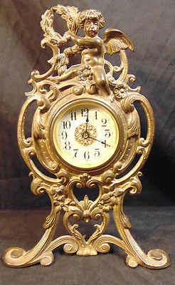 Antique Art Nouveau Ornate Putto Shelf Clock 1906