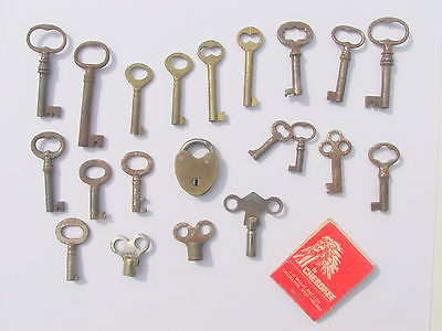 Title (ebay affiliate link): Assortment of 20 antique mortise, cabinet, and clock keys