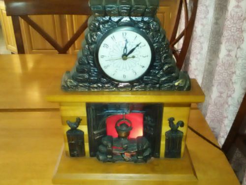 United Metal Clock Antique Electric with Fireplace