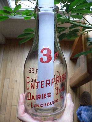 pyro milk bottle: Enterprise Dairy 3¢, Lynchburg, Va