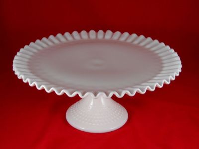VINTAGE FENTON Hobnail Milk Glass Cake Stand 1970's