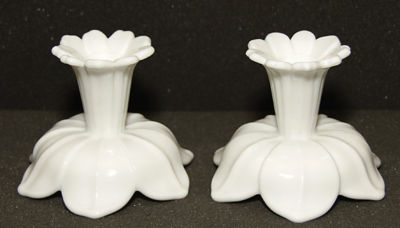 2 Westmoreland Lotus Milk Glass Candle Holders